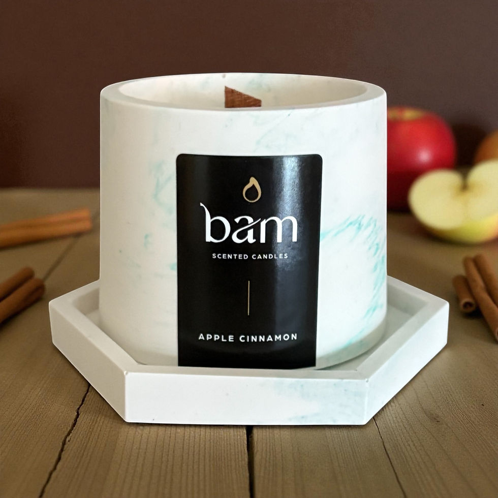 geschenkset met APPLE CINNAMON geurkaars, decoratieve kaars en schaaltje
